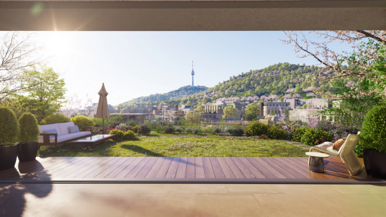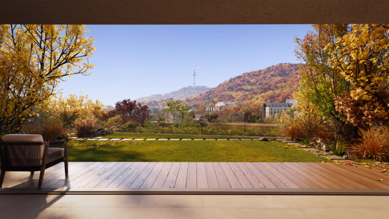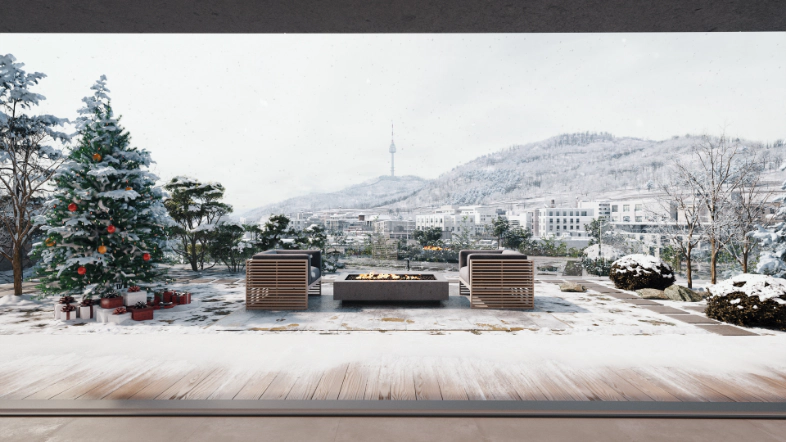 보스크 남산의 테라스에서는 남산의 사계절 풍경이 조용하고 선명하게 펼쳐집니다.